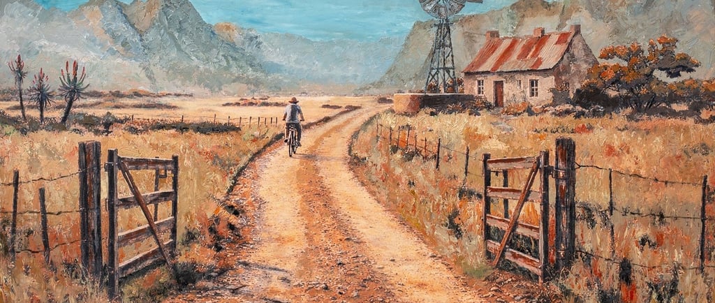 Various elements of this scene were inspired by photographs taken throughout the Montagu and Koo Valley region over several years — images of the mountains, the roads, the farm structures, and the quiet rhythm of rural life.